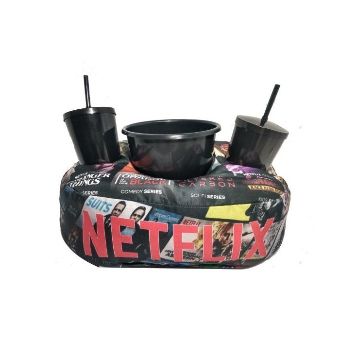 Kit Almofada Porta Pipoca Balde + 2 Copos Netflix Séries