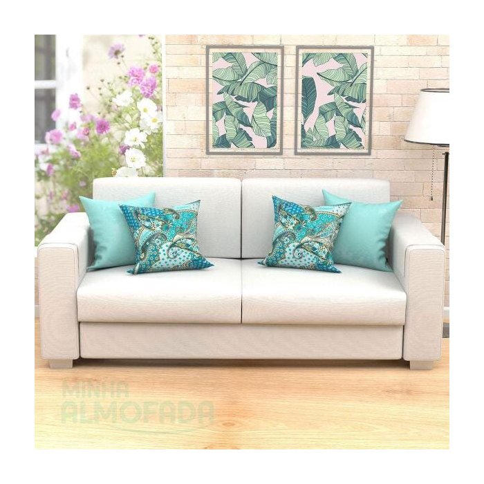Kit Almofadas Para Sala Arabesco Azul Tiffany Composê