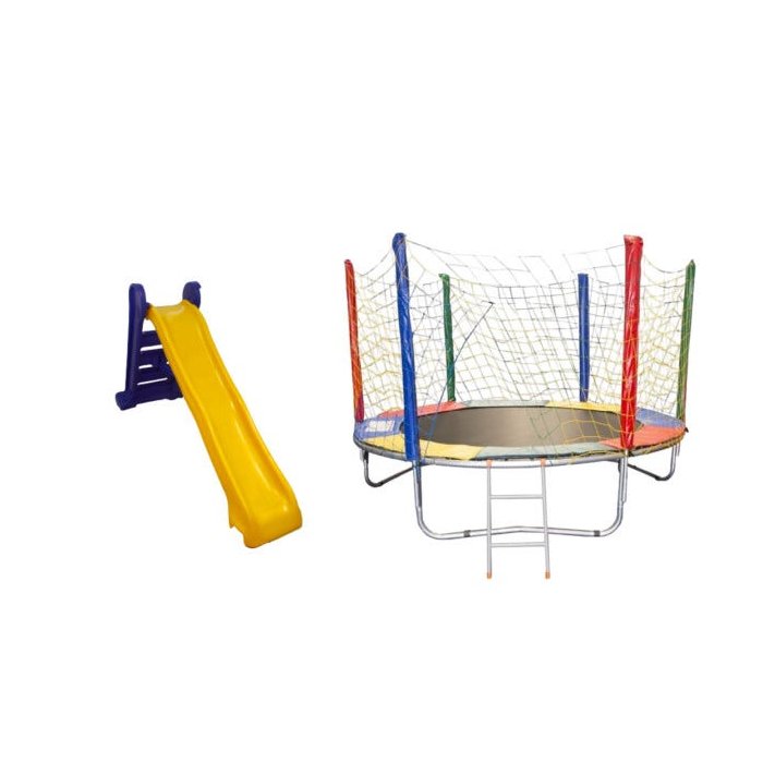 Kit Amarelo Cama Elástica 2,50m + Escorregador Grande 4 Degraus Colorido