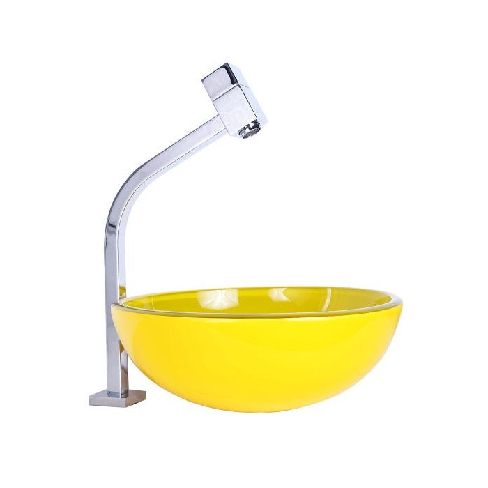 Kit Amarelo Cuba 30cm + Torneira Link Quadrada + Válvula