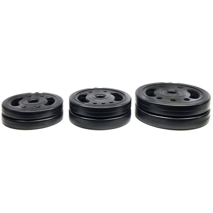 02 x anilhas de 5 kg em Polietileno, ;que não enferruja e é revestida ;