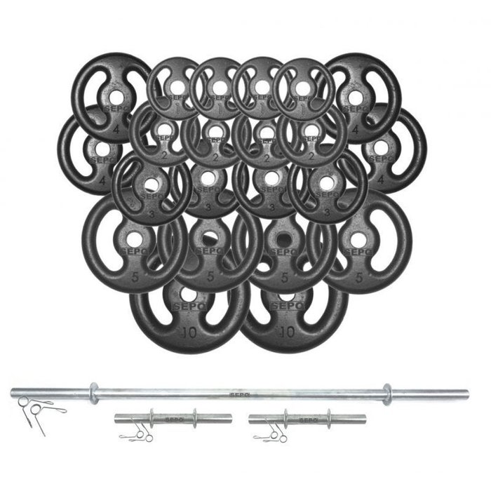 Kit Anilhas Vazadas 80kg + Barras Maciças Zincada
