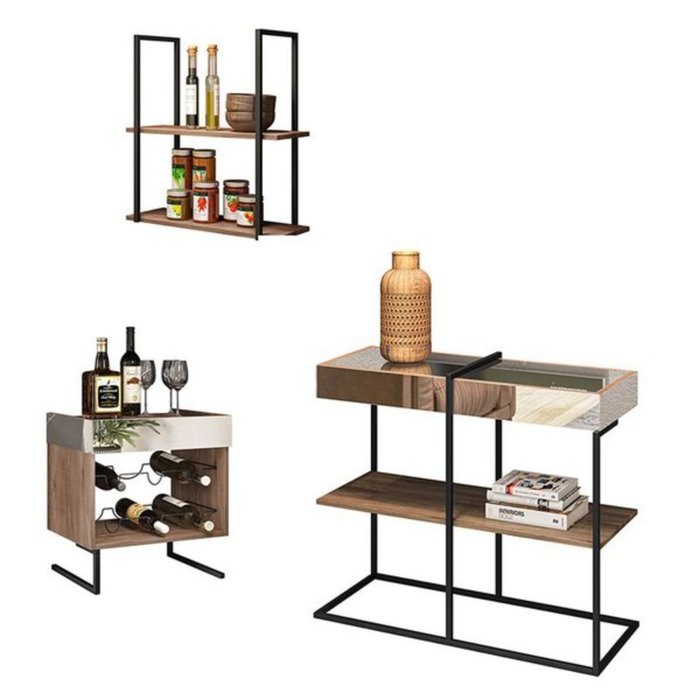 Se você procura adicionar um toque de requinte, elegância e uma visão única em design sem comprometer a qualidade, o Conjunto Aparador, Adega e Prateleira Estilo Industrial Aurora é a escolha ideal. Criado para quem valoriza um design diferenciado, este conjunto aparador adega prateleira industrial é uma verdadeira obra-prima.