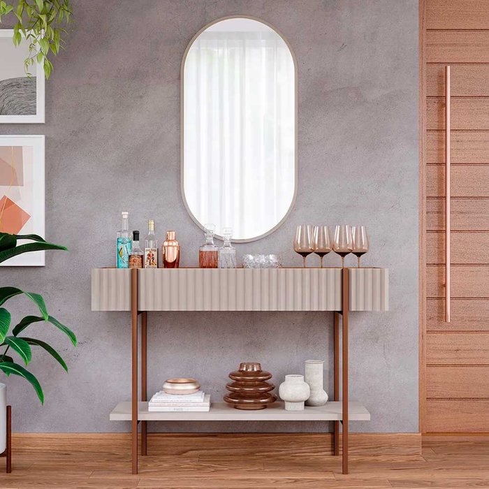 Kit Aparador Canelado Lira com Espelho Decorativo Jade Cimol Off White/Nature