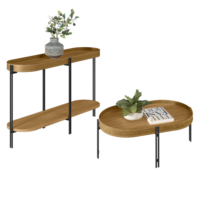 Modernidade é o atributo que define o Kit Aparador e Mesa de Centro Industrial Para Sala de Estar Madri L01 Nature Fosco Clique Chique. Sua estrutura em aço, tampo arredondado, acabamento em couro ecológico e costuras aparente deixam o ambiente ainda mais charmoso.