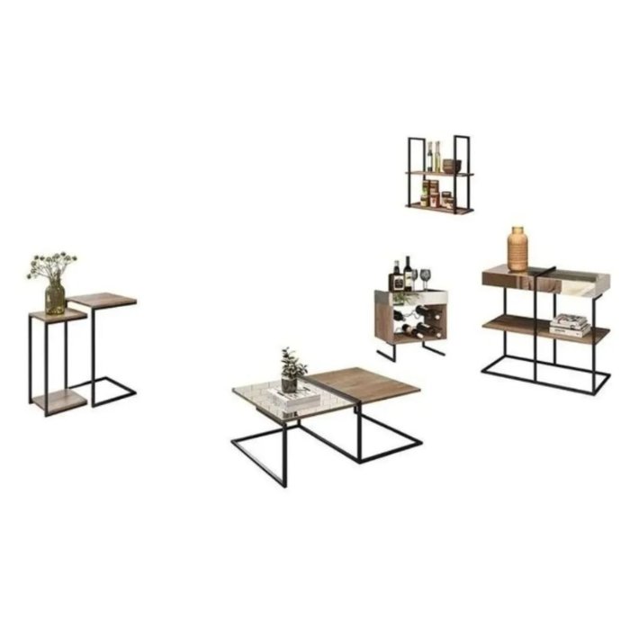 Compre já o Jogo de Mesas, Adega, Aparador e Prateleira Estilo Industrial Aurora da Dream Home e ouse na sua utilização deixando a sua casa ainda mais linda!