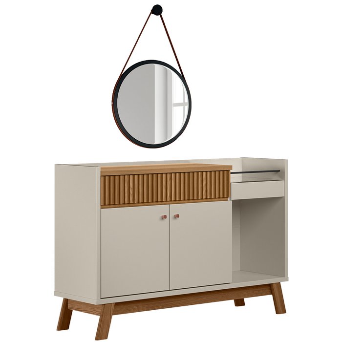 Kit Aparador Sala De Estar 2 Portas Mateo Com Espelho Adnet Preto L05 Amêndoa Off White - Lyam
