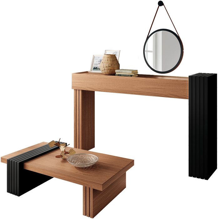 Com design singular o Kit Aparador Sala De Estar Mesa De Centro Lord Com Espelho Adnet Preto B01 Nature Preto - Lyam Decor permiti infinitas combinações e arranjos, se comunica super bem com o restante do ambiente e garante o destaque que a sua decoração merece!