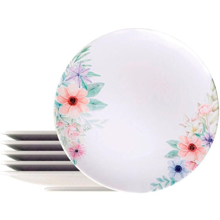 6 Prato Fundo Floratta Com 22cm De Diâmetro;6 Prato Raso Floratta Com 28cm De Diâmetro;