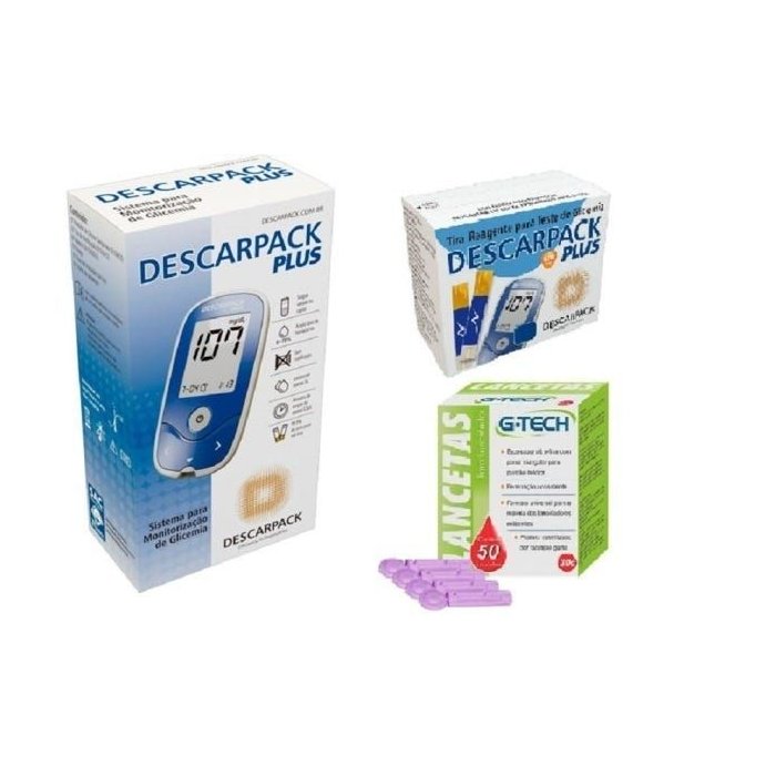 Kit Aparelho Medidor de Glicose com 50 Tiras + 50 Lancetas Descarpack Plus