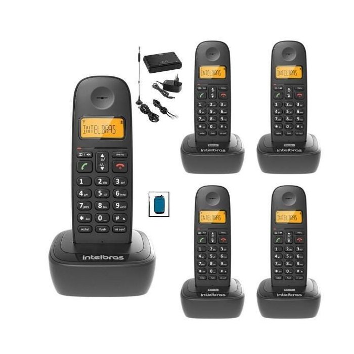 4 unidade - ramal sem Fio ts 2511 intelbras ( 4 fone 4 base 4 bateria recarregável 4 adaptador de tensão bivolt 4 manual do usuário)