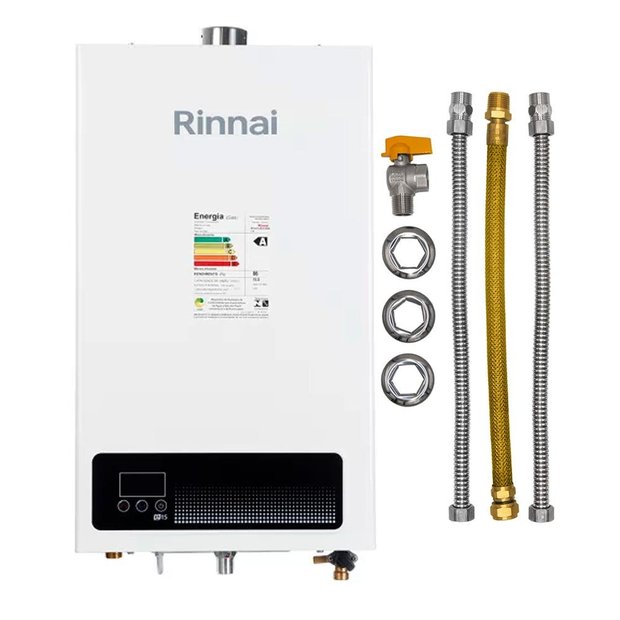 Kit - Aquecedor Rinnai 15 Litros E15 Feh - Gn (digital) Branco