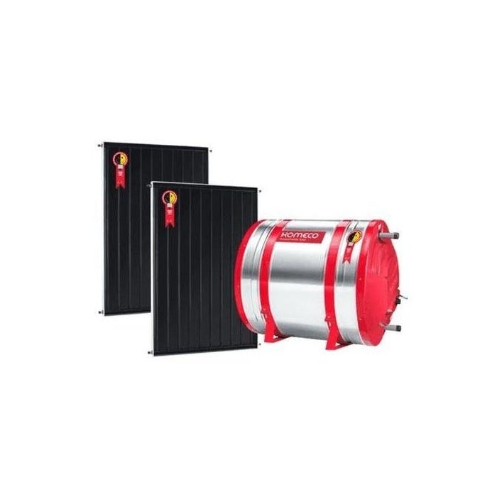 Kit Aquecedor Solar com boiler 200 Litros fabricado em aço Inox 304 de baixa pressão em desnível + 2 Coletores de 1m² MX, todos os produtos da Komeco