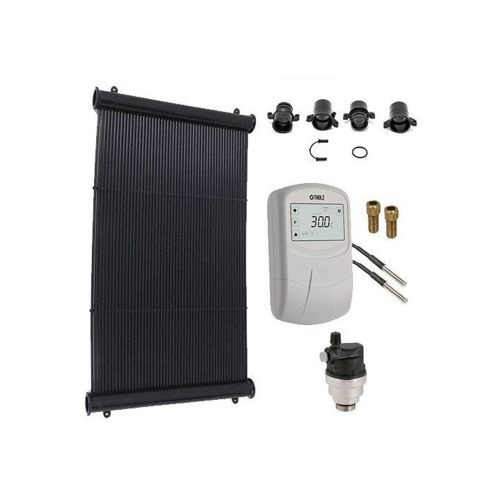 Kit Aquecimento Solar para Piscinas 18 m² - KS Aquecedores O Kit inclui: 18 Coletores Solares 3x0,33m ou 27 Coletores Solares 2x0,33m 2 Sensores de Temperatura 1 Controlador de temperatura Tholz MMZ 1 Poço termométrico em latão 1 Válvula eliminadora de ar (emmeti) Ideal para uma piscina de até 18 m² Volume em torno de 23.000 litros O KIT completo foi montado pensando especialmente na sua praticidade! Com ele você terá todas as peças necessárias para ter sua piscina aquecida! Veja abaixo como funciona: Obs.: Caso precise alterar algum item ou personalizar seu kit de acordo com as medidas de sua piscina, entre em contato conosco antes de concluir a compra para que possamos fazer um novo orçamento personalizado que atenda suas necessidades. Coletor Solar -30 KS Aquecedores Aquecedor solar para piscina KS Aquecedores Modelo TekSol - 30 com medidas de 3,00x0,33m Fabricado em polipropileno e com proteção de raios UV os coletores da KS aquecedores possuem alta durabilidade. - Excelente absorção por m² - Produto livre de calcificação e corrosão - Leve e fácil instalação - Baixo custo de manutenção - Excelente economia de energia elétrica ou gás - Único do mercado com separados a cada 30cm - Resistente a alta pressão - Produto ecologicamente correto Caso necessite de um auxílio para dimensionamento da quantidade de coletores nos consulte para você ter o melhor resultado do seu aquecimento Controlador de temperatura MMZ Tholz O Controlador De Temperatura - Aquecimento Solar - Tholz MMZ é uma peça que permite o acionamento automático da bomba d’agua de acordo com a necessidade do aquecimento da água. O produto funciona com um sensor de temperatura na saída de água do coletor que indica se é necessário acionar a bomba d’água garantindo o aquecimento constante na água da piscina. Kit terminais conexão de montagem para 01 bateria Os Kits terminais são peças indispensáveis para a instalação do coletor solar que vedam as pontas de cada bateria de coletor. Cada bateria de coletor requer um kit terminal. No geral, usa-se 100% da área da piscina, mas você pode se basear na planilha abaixo para escolher o kit ideal para sua piscina! ESPECIFICAÇÕES TÉCNICAS PARA CADA 01 COLETOR SOLAR Características: - Peso: 6,100 kg - Altura: 30 mm - Comprimento: 3050 mm - Área: 1,00 m² por coletor - Material: Polipropileno Baixe o Manual Completo