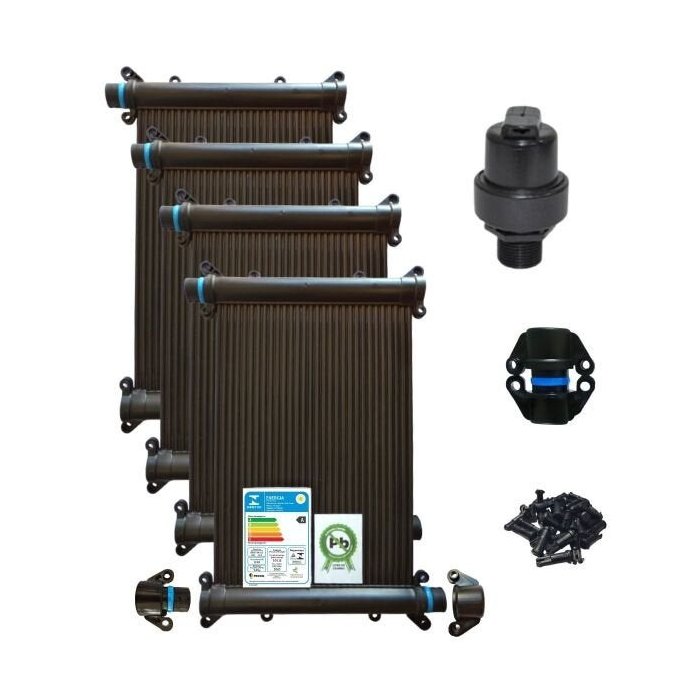 KIT AQUECIMENTO SOLAR PISCINA 11 PLACAS 3MT + VÁLV QUEBRA VÁ Preto