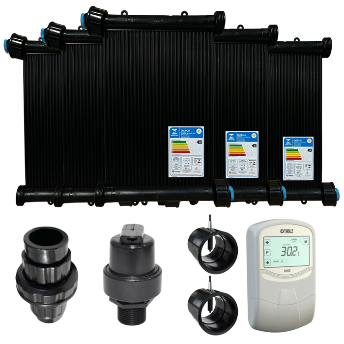 Kit Aquecimento Solar Piscina 20Placas 5Mt ROSCA+Valvs+Cdt Preto