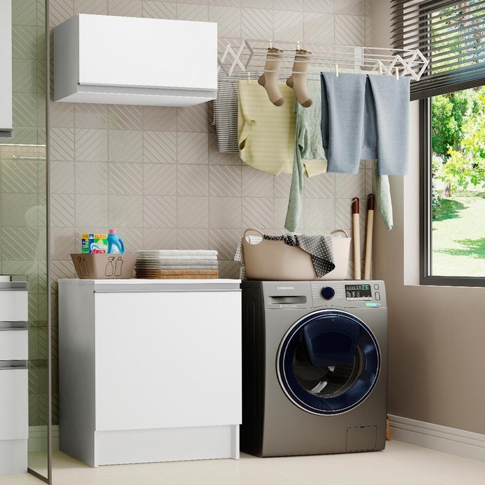 Kit Área de Serviço Madesa Topazio 60cm com Armário e Balcão Branco