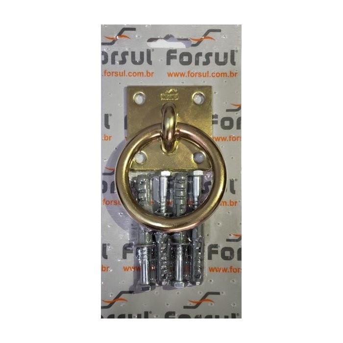A argola Forsul é um produto muito reforçado indicado para prender animais domésticos e de grande porte, assim como é possivel prender embarcações, aeronaves, automóveis, motocicletas, bicicletas entre outros como adorno de portas. Desenvolvidos com tecnologia própria, as argolas Forsul são bem resistentes e se bem instalada suporta até 1000 quilos.