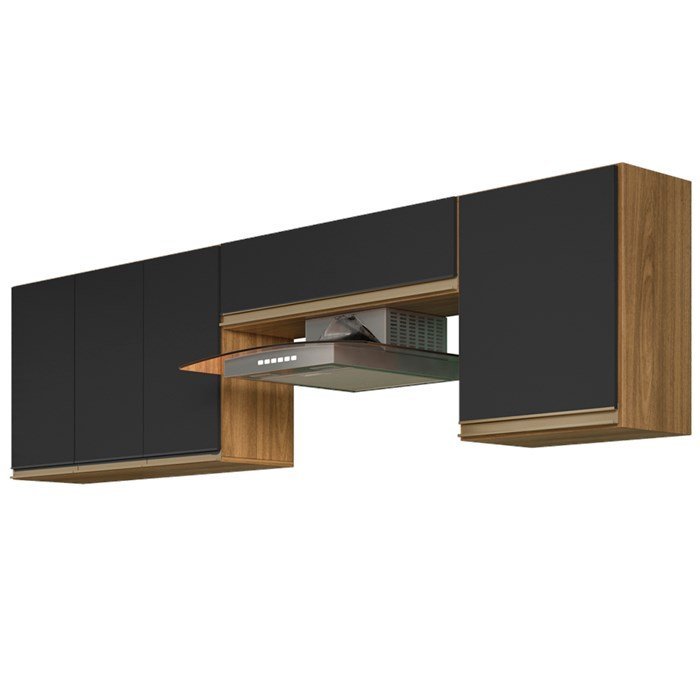 Kit Armario Aereo 3 Peças 234 cm Nature Preto Fosco PLLA
