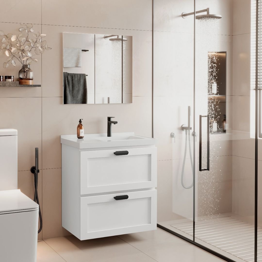 Design, Sofisticação, Qualidade e Beleza. Tudo em um só produto!O Kit Provençal 66 é a melhor opção para o seu banheiro!Gabinete 100% MDF com Bancada de Mármore Sintética Branca; gaveta com corrediças telescópicas que proporcionam a extração total das gavetas; puxador em metal; dobradiças reforçadas com sistema Slow, e Pistão que garate maior estabilidade e amortecimento ao fechamento de porta; espelho lapidado 3mm com fixação invisível.***Gabinete vai montado***- Gabinete 100% Mdf- Bancada Sintética Branca- Porta com dobradiças metálicas, com amortecedores Slow- Porta com Pistão- Puxador em metal- Espelho lapidado 3mm com fixação invisível.PADRÕES DE CORES DISPONÍVEIS:- Grafite- BrancoDIMENSÕES:- Gabinete: Largura: 66 cm / Profundidade: 40cm / Altura: 70cm- Espelho: Largura: 49 cm / Profundidade: 3mm / Altura: 57 cmMONTAGEM:- Nossos produtos são montados para facilitar a instalação em sua residência, ficando a cargo do cliente apenas a instalação.- Manual e ferragens para fixação acompanham o produto.*Todos os produtos da marca Astral Design oferecem 02 anos de garantia, contra defeito de fabricação.* TORNEIRA, VÁLVULAS E PEÇAS HIDRAULICAS NÃO INCLUSAS.