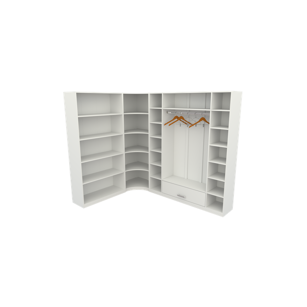 Seu design clean e acabamento na cor branca trazem leveza ao ambiente, sendo perfeito para quartos, closets ou apartamentos compactos. Além disso, o sistema modular permite fácil adaptação às suas necessidades do dia a dia.