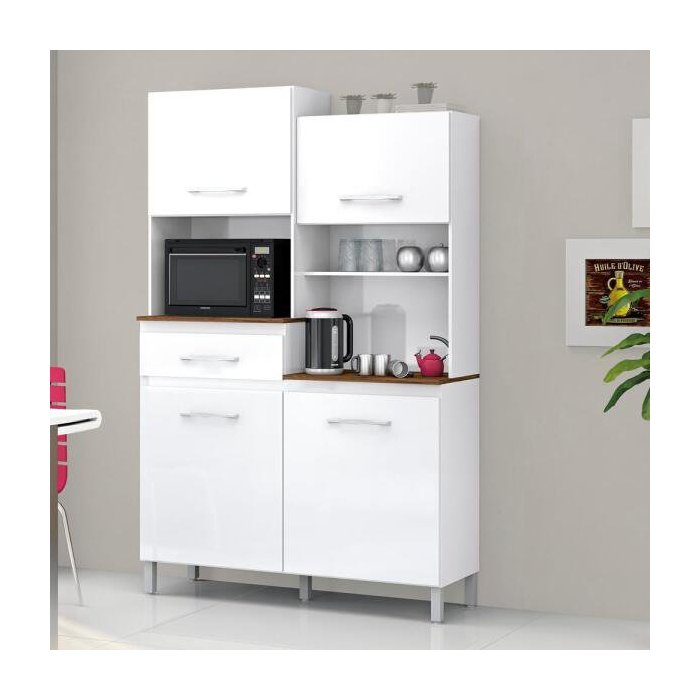Kit de Cozinha Perola 04 Portas - Vitamov A Vita Moveis desenvolveu o Kit Armario de Cozinha Perola, pensando em ambientes compacto a mesma conta com 04 portas, gaveta com corredicas metalicas ideal para manter todos seus pertences organizados e nicho para objetos decorativos tudo o que precisa em um unico produto, deixando seu ambiente organizado e bonito. E para facilitar na hora da limpeza o armario Perola conta com pes alto. Caracteristicas do Produto