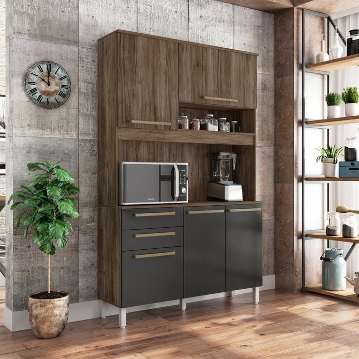 Kit Armário Cozinha Prisma Madeira Grafite Madine