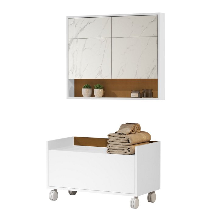 Kit Armário De Banheiro Inferior E Aéreo Branco/Nature