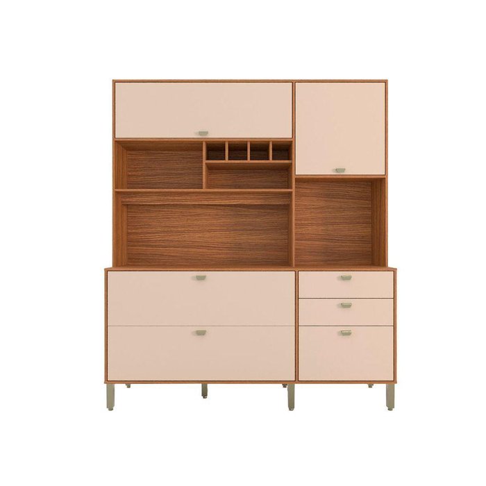 Kit Armário De Cozinha Prática 05 Portas 2 Gavetas Novara Cor Carvalho Amaricano Liso - Off White