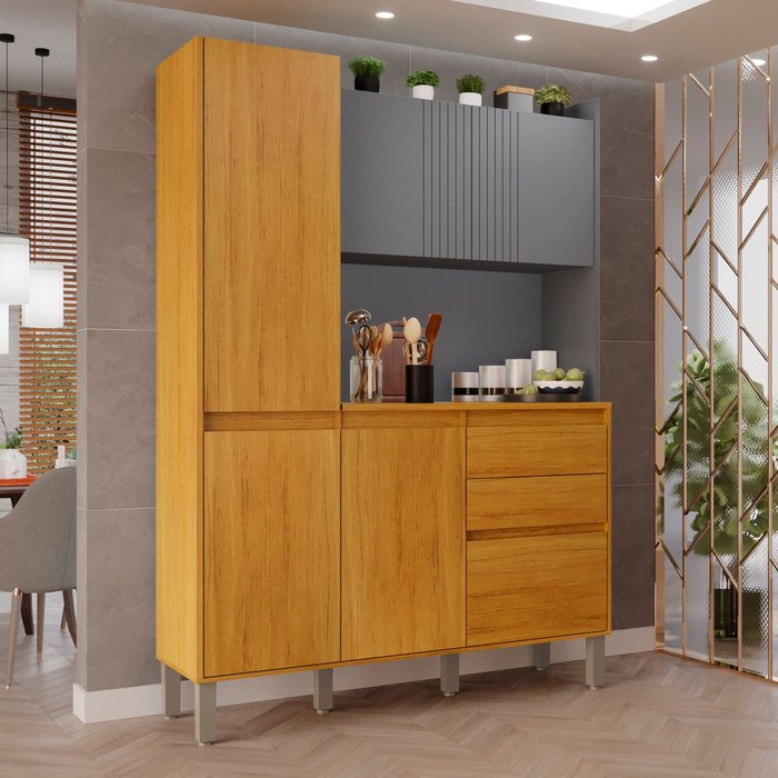Kit Armário de Cozinha 6 Portas 2 Gavetas Luan cinamomo/grafite