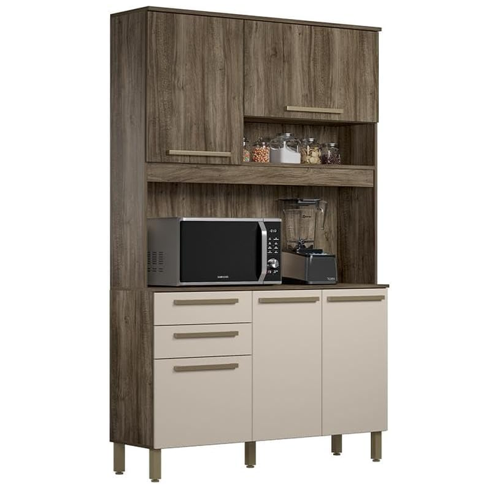 Kit Armário De Cozinha Compacta Preto com Bege Multiuso Espaçoso Com 5 Portas 2 Gavetas 1,20 Luxo Pm