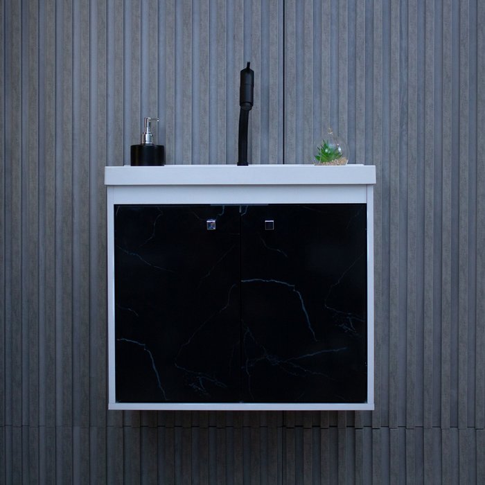 O Gabinete suspenso para banheiro é desenvolvido com estrutura em MDF e a cuba em BMC, garantindo mais durabilidade e resistência ao produto.