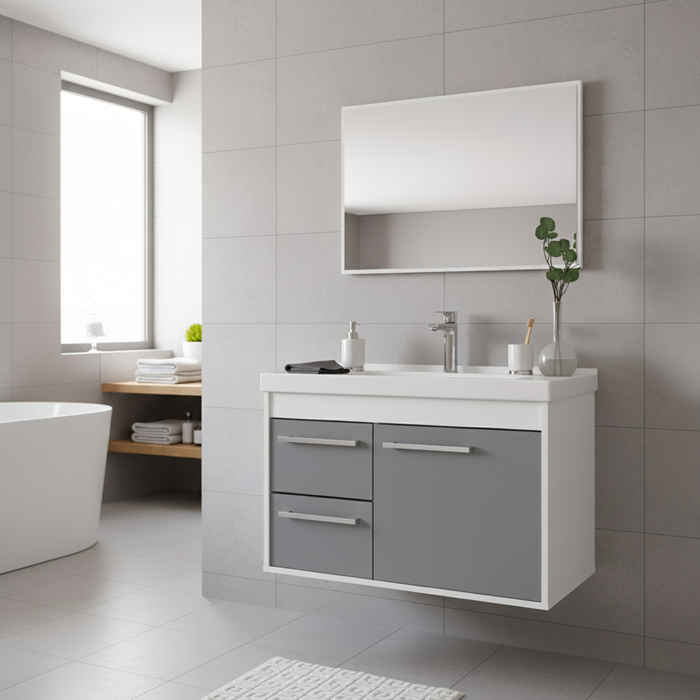 O Gabinete suspenso para banheiro é desenvolvido com estrutura em MDF e a cuba em BMC, garantindo mais durabilidade e resistência ao produto.