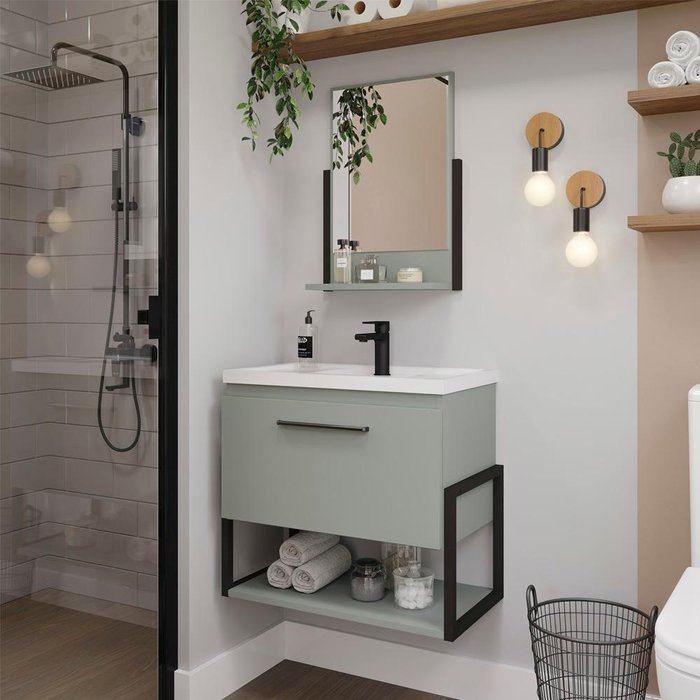Conjunto armário de Banheiro e Espelheira 60 cm Ipanema MGM Móveis Pistache