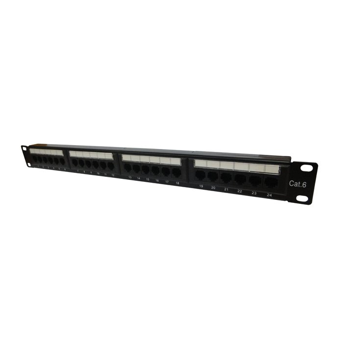 Painel de Conexão / Patch Panel com 24 portas, Cat.6, na cor Preta
