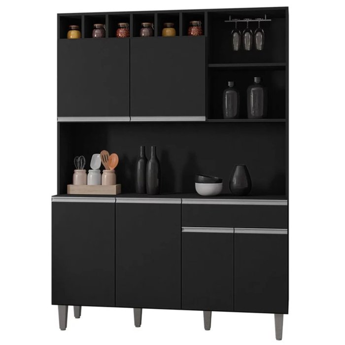 Kit Aurora 130cm Cozinha Compacta com Nichos Preto