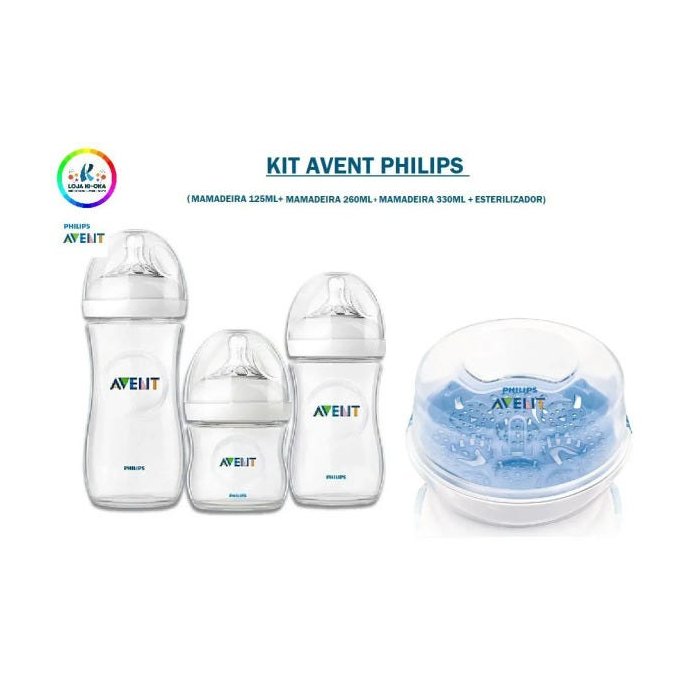 Kit Avent Philips Pétala 4 pçs - 125ml/260ml/330ml/Esterilizador