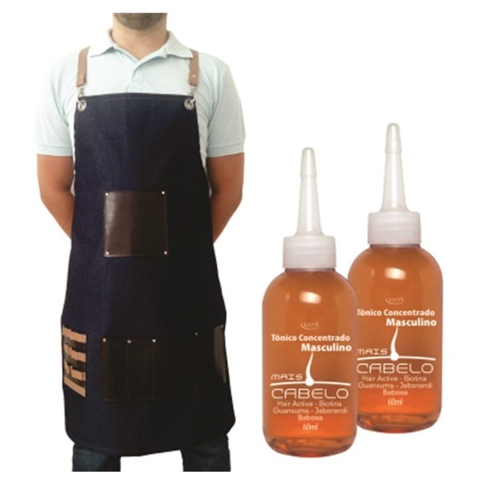 Kit Avental Barbearia Barbeiro Com Tônico Capilar De Brinde