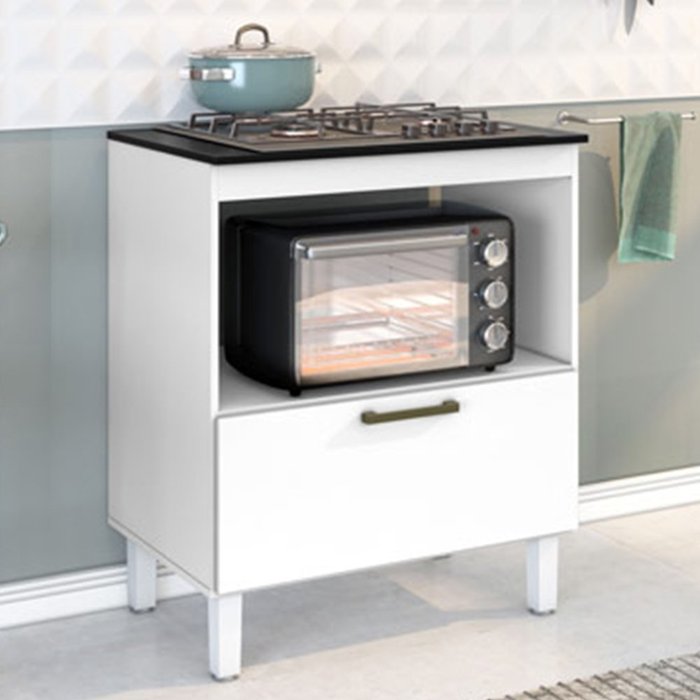 Sua cozinha merece um design inovador e seguro, o balcao cooktop contem uma porta de bascular com dobradiças metalicas e articulador, espaço para fogão cooktop de 4 bocas, e espaço para forno elético, quatro pés com regulagem de altura, puxador de plastico, profundidade 523mm, acabamento UV/Verniz, estrutura em MDP 15mm.