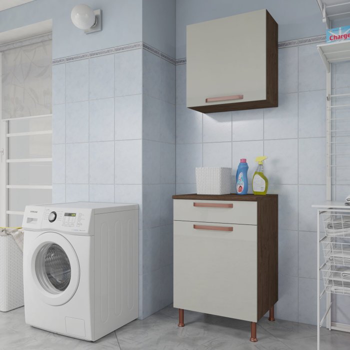 Kit balcÃo inferior e armÁrio predilleta julia 60cm 2 portas e 1 gaveta com tampo noce off Off White