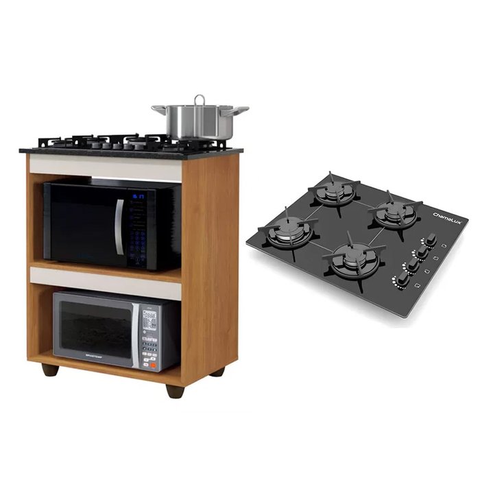 Kit Balcão para Cooktop Cozinha Kaiki Turim Nature Off White com Fogão Cooktop Chef 4 Bocas Preto Ch