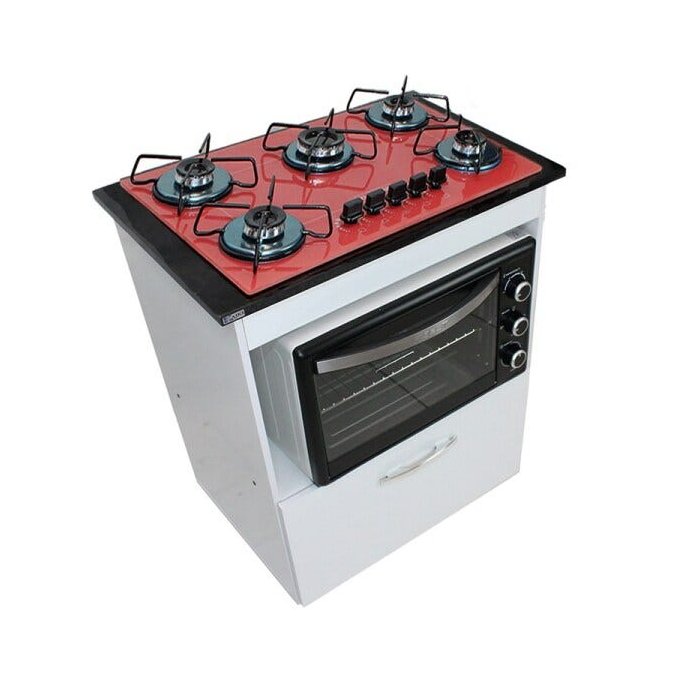 Kit Balcão Salvia Branco com Cooktop Vermelho 5 Bocas e Forno Elétrico 60L