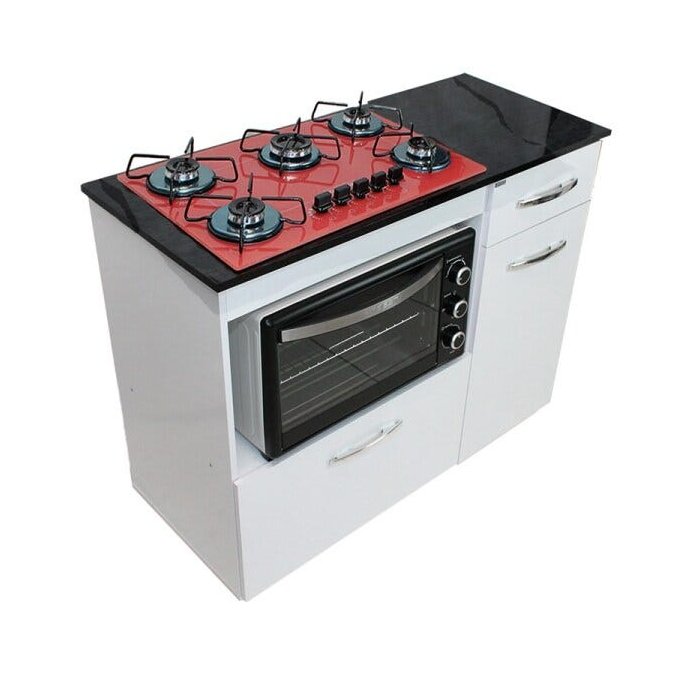 Kit Balcão Violeta Branco com Cooktop Vermelho 5 Bocas e Forno Elétrico 60L