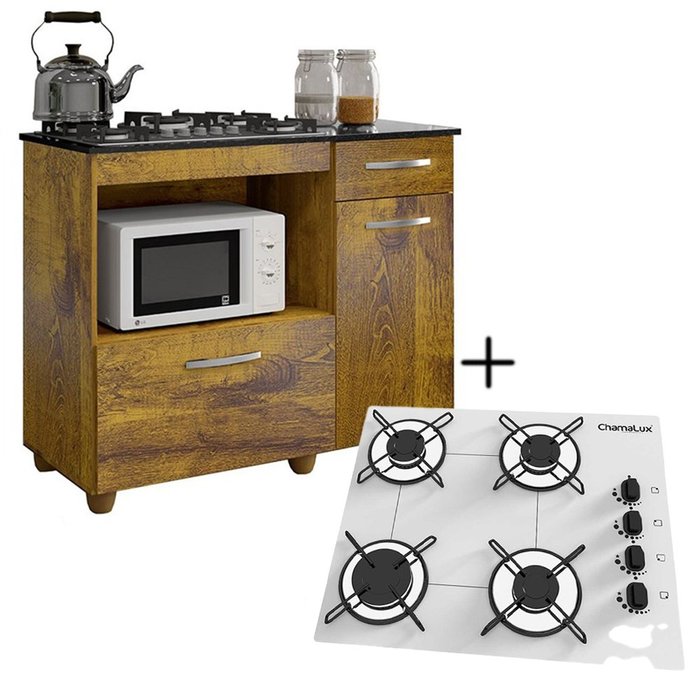 Conteúdo da embalagem: 01 balcão; 01 cooktop.