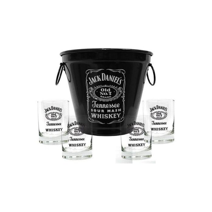 Kit Balde + 4 Copos Jack Daniel's Sem Fundo 290ml Whisky