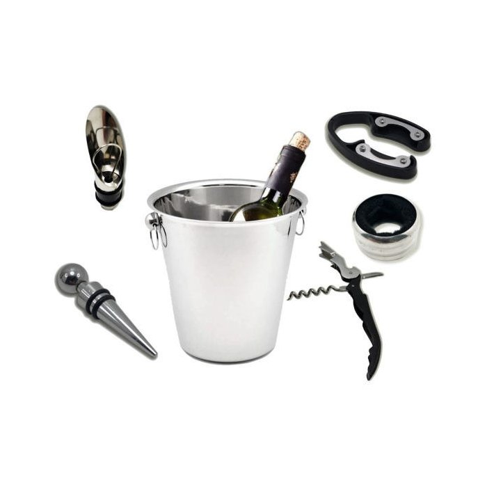 Kit Balde Inox Gelo + Utensílios Para Vinho