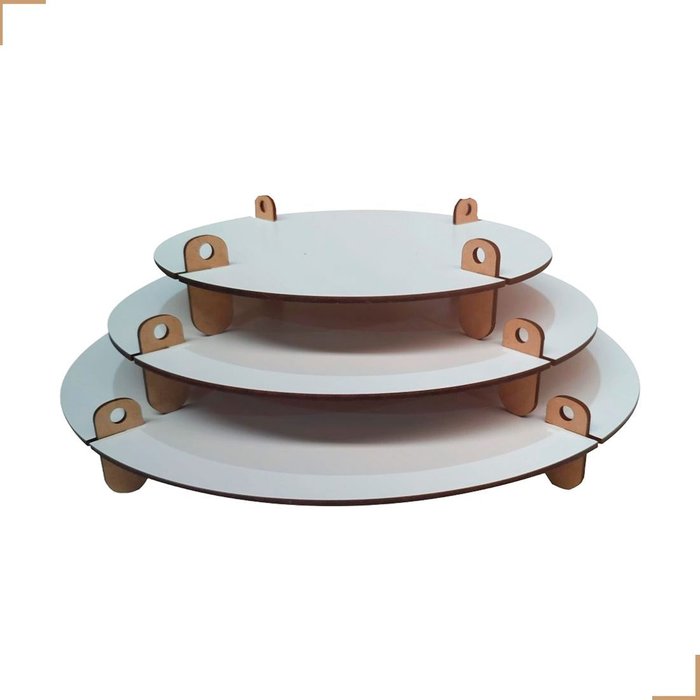 Kit Bandeja para Docinhos e Brigadeiro em Mdf Branco Redonda com Pés Desmontáveis com 3