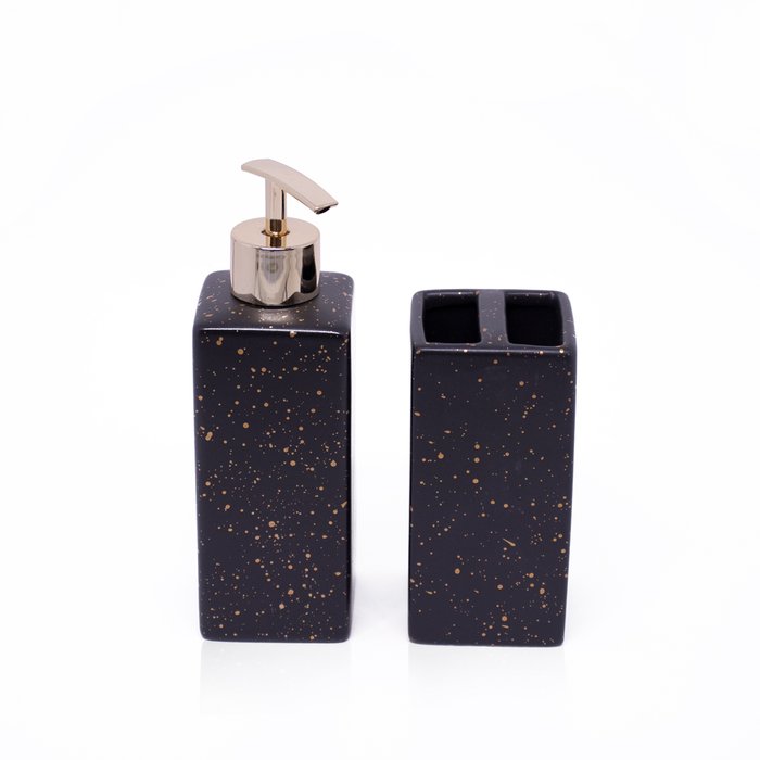 Kit Banheiro 01 Porta Sabonete Liquido e 01 Porta Escova em Cerâmica Preto - Indo Decorar