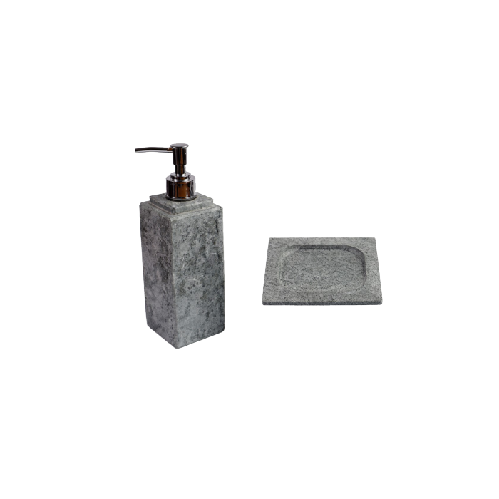 01 Porta Sabonete Líquido Dispenser em Pedra Sabão Prata 22x7cm.