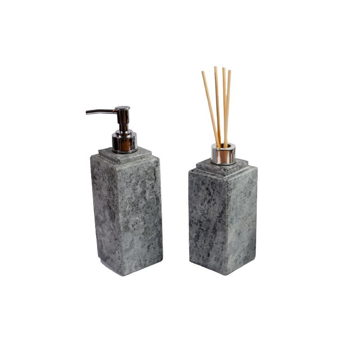 01 Porta Sabonete Líquido Dispenser em Pedra Sabão Prata 22x7cm.